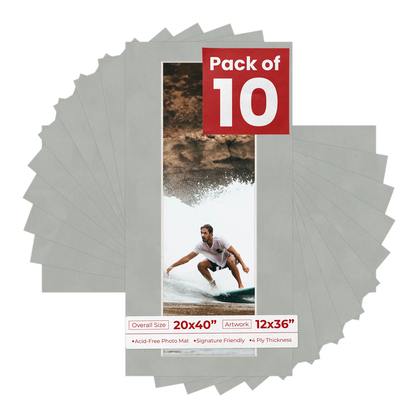 Light Grey Suede Mat Board for 20x40 Frames - Fits 12x36 Photos