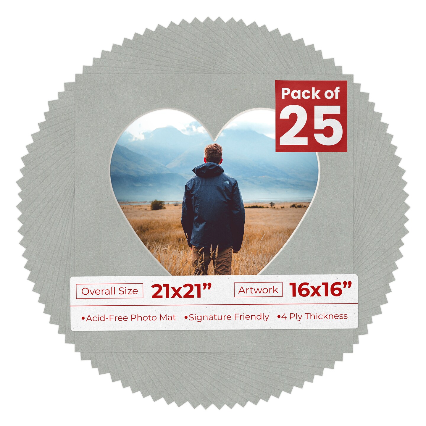 Light Grey Suede Mat Board for 21x21 Frames - Heart Opening for 16x16 Photos