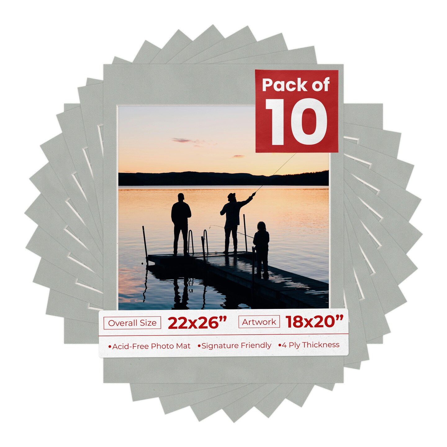 Light Grey Suede Mat Board for 22x26 Frames - Fits 18x20 Photos