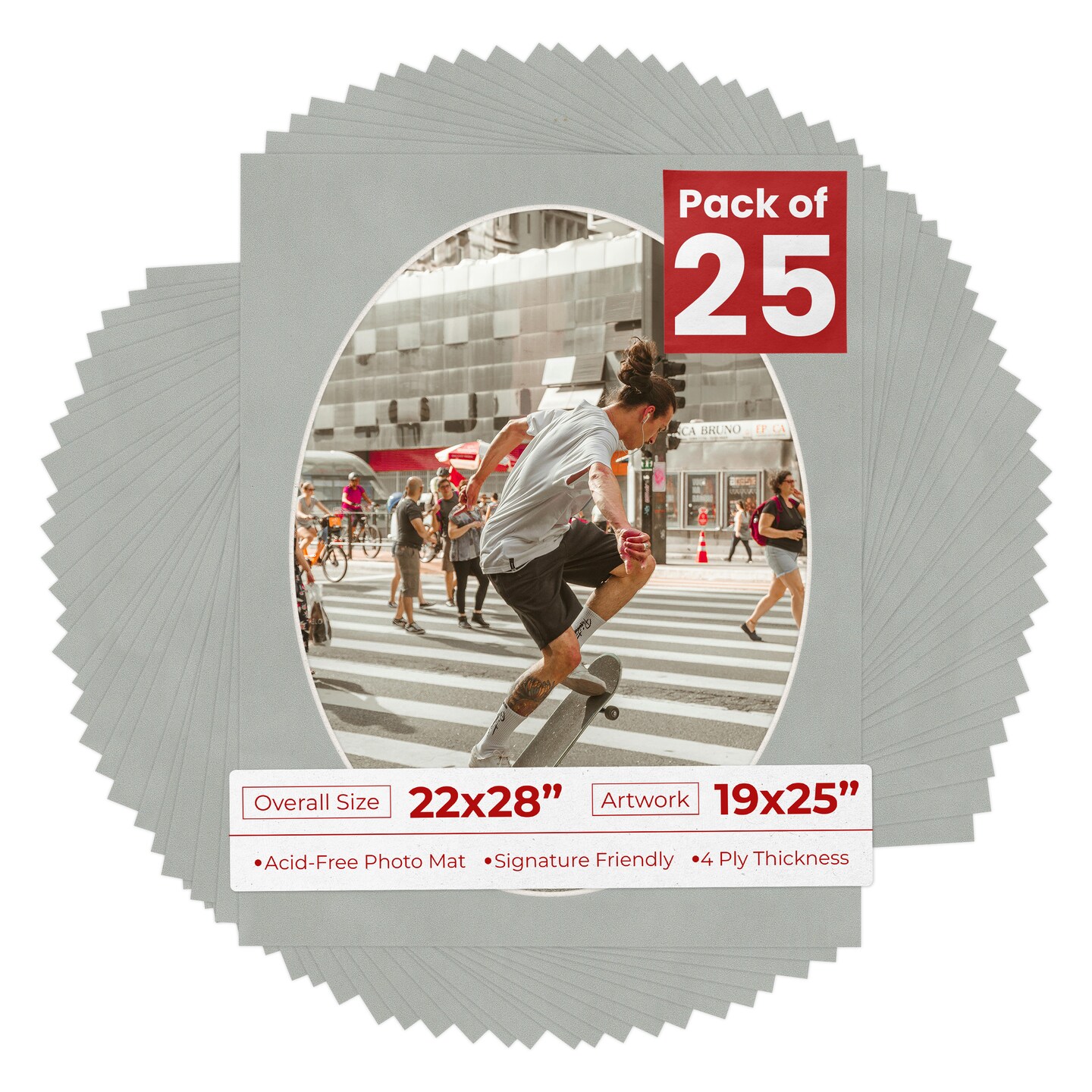 Light Grey Suede Mat Board for 22x28 Frames - Oval Opening for 19x25 Photos