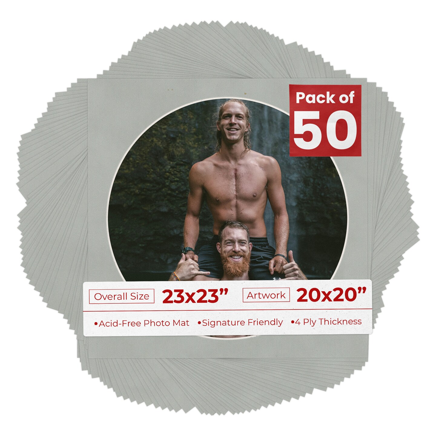 Light Grey Suede Mat Board for 23x23 Frames - Circle Opening for 20x20 Photos