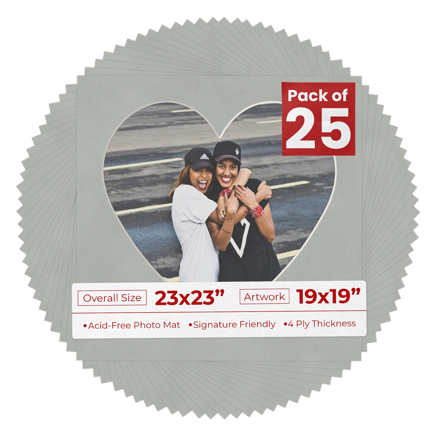 Light Grey Suede Mat Board for 23x23 Frames - Heart Opening for 19x19 Photos