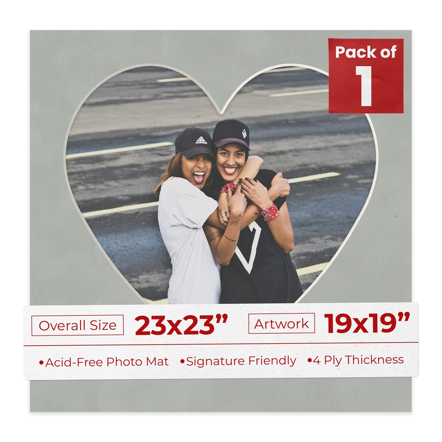 Light Grey Suede Mat Board for 23x23 Frames - Heart Opening for 19x19 Photos