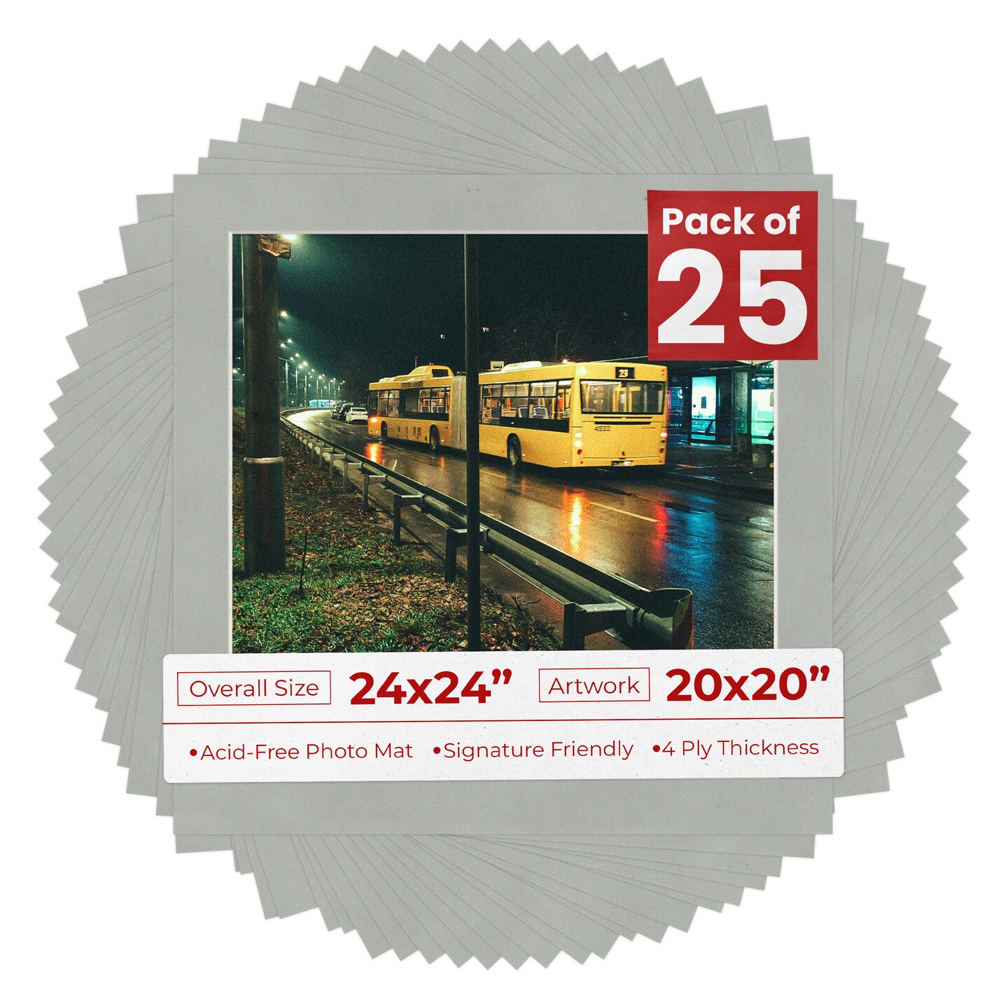 Light Grey Suede Mat Board for 24x24 Frames - Fits 20x20 Photos