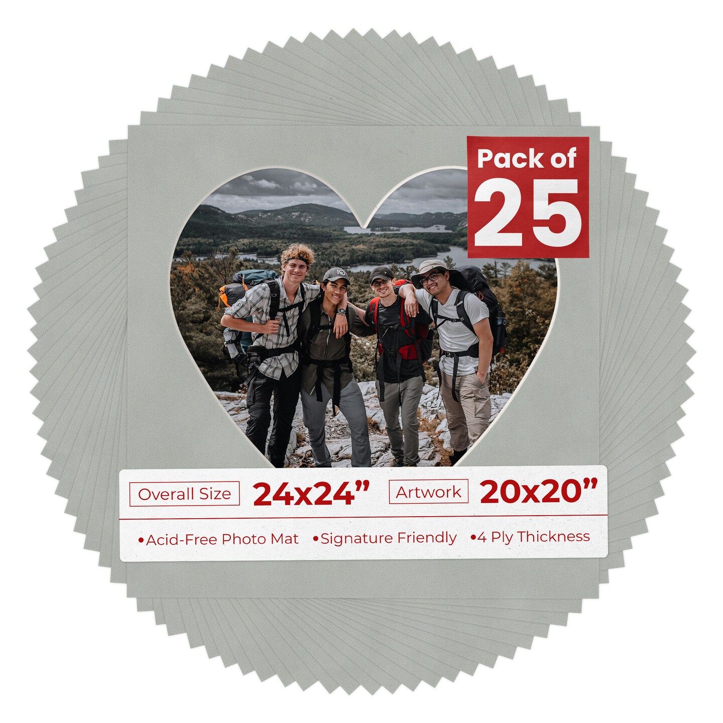 Light Grey Suede Mat Board for 24x24 Frames - Heart Opening for 20x20 Photos
