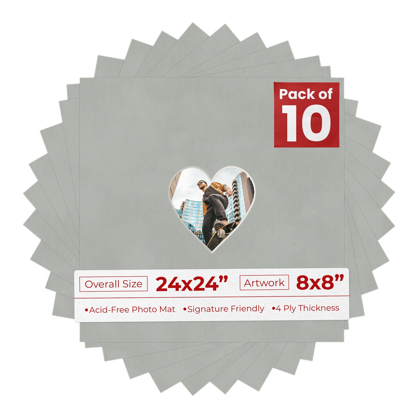 Light Grey Suede Mat Board for 24x24 Frames - Heart Opening for 8x8 Photos