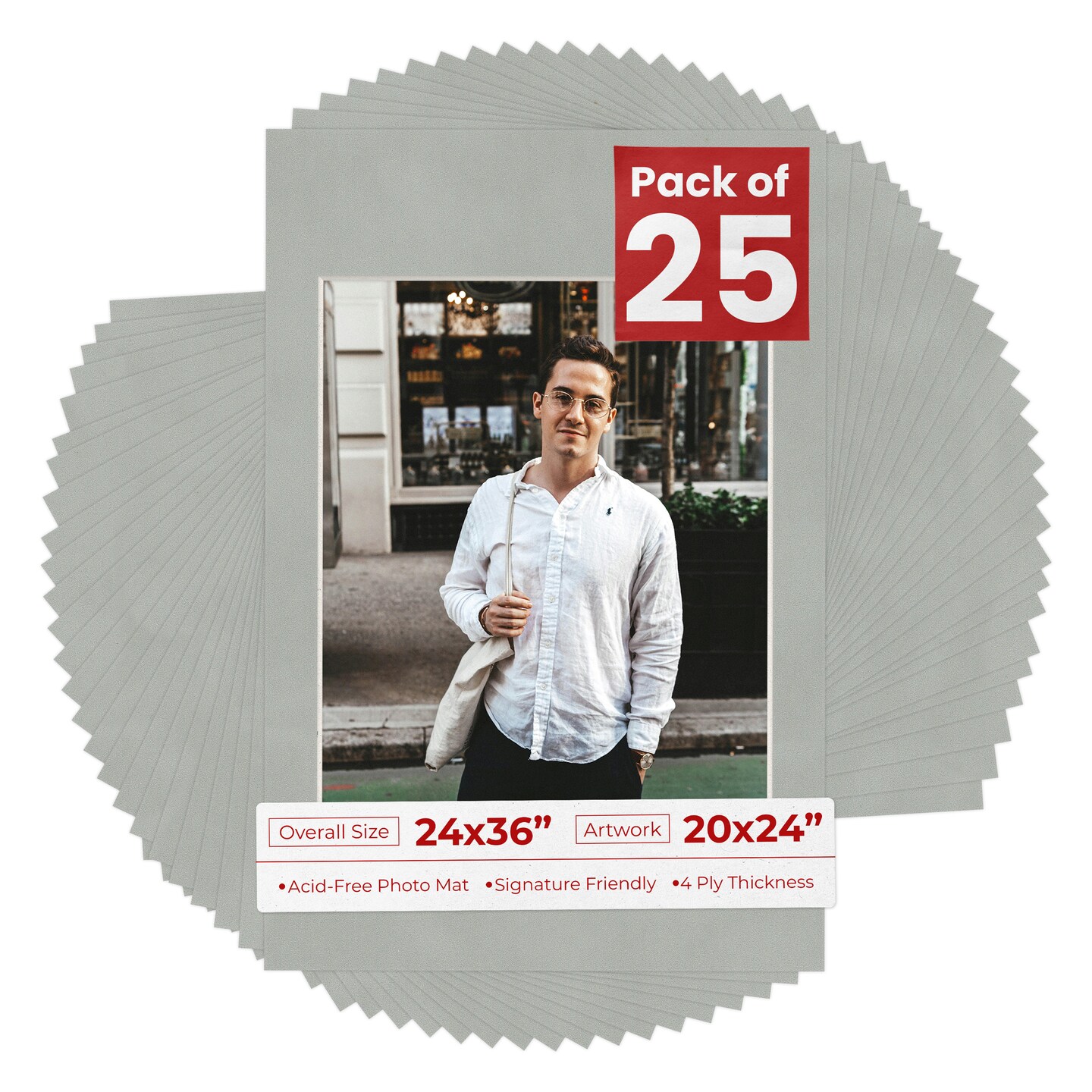 Light Grey Suede Mat Board for 24x36 Frames - Fits 20x24 Photos