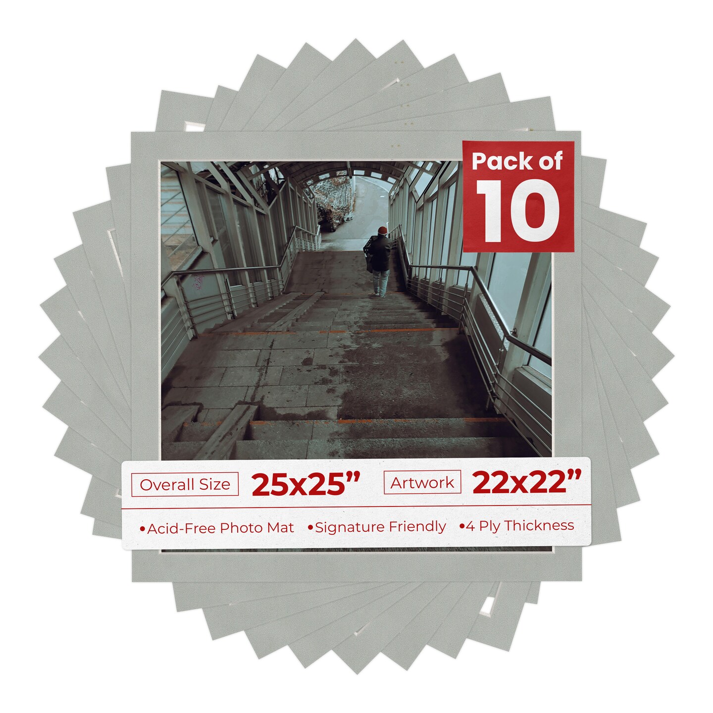 Light Grey Suede Mat Board for 25x25 Frames - Fits 22x22 Photos