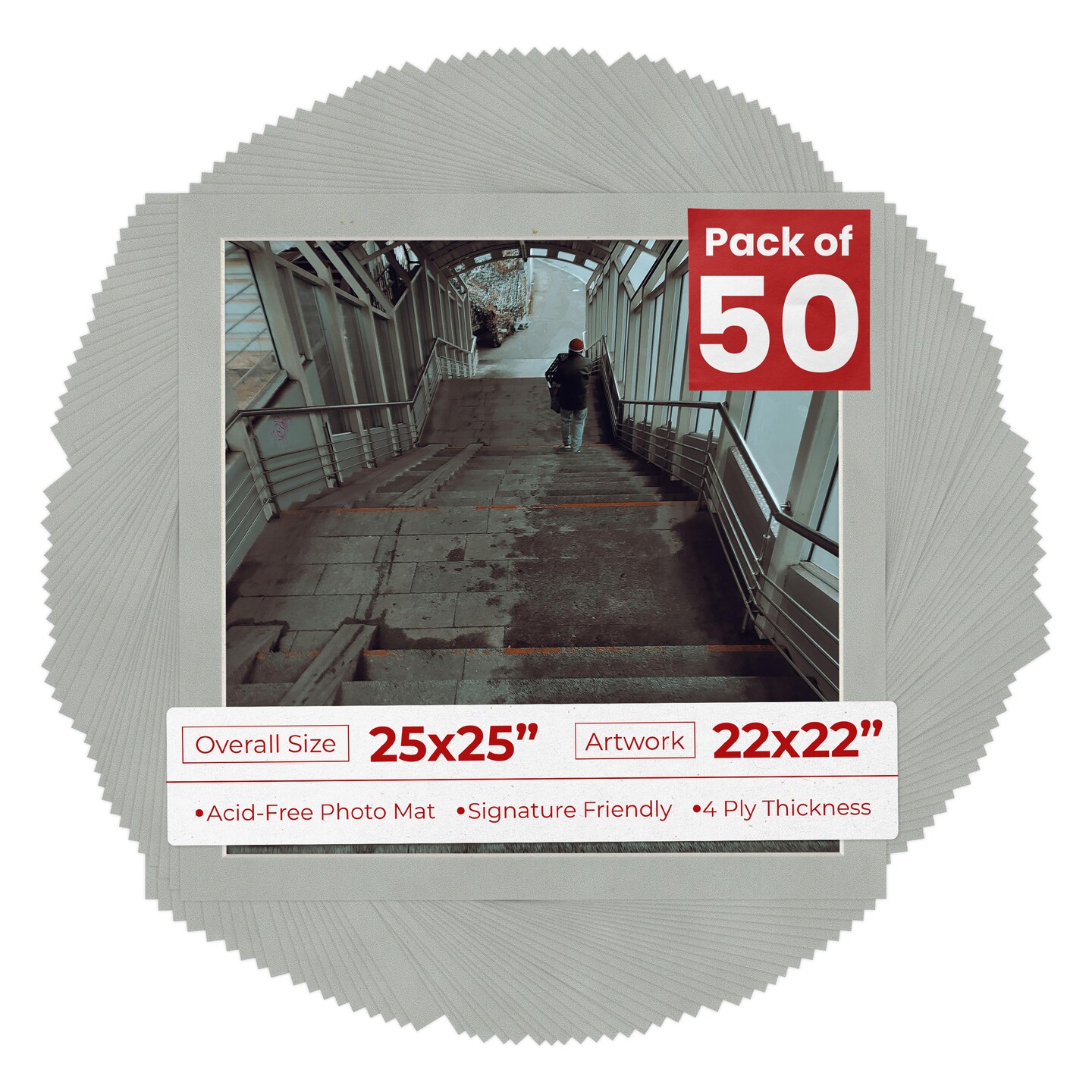 Light Grey Suede Mat Board for 25x25 Frames - Fits 22x22 Photos