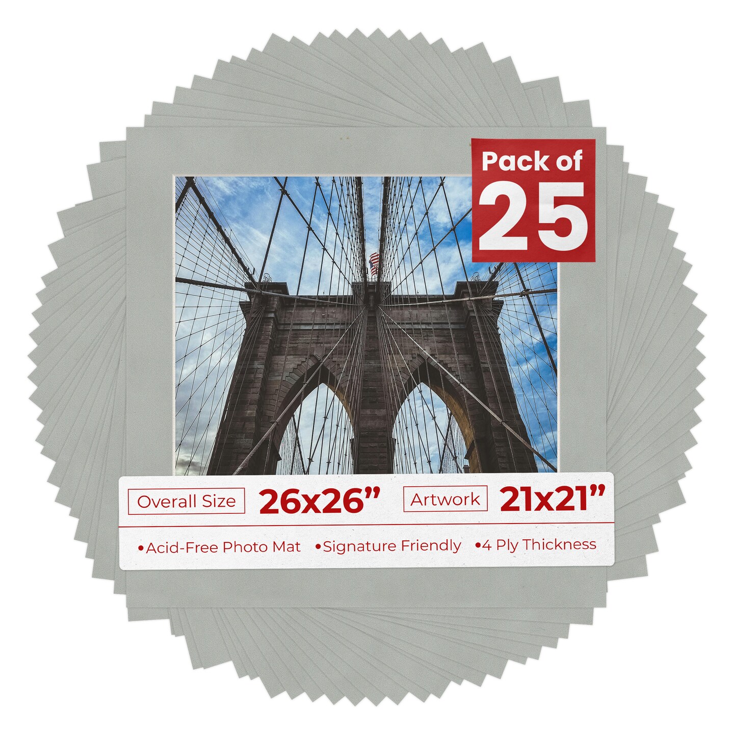 Light Grey Suede Mat Board for 26x26 Frames - Fits 21x21 Photos