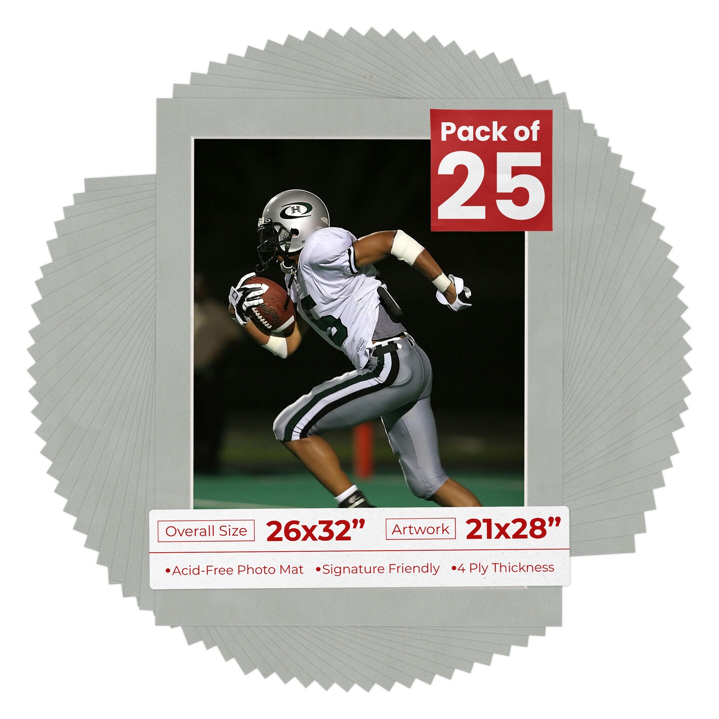 Light Grey Suede Mat Board for 26x32 Frames - Fits 21x28 Photos