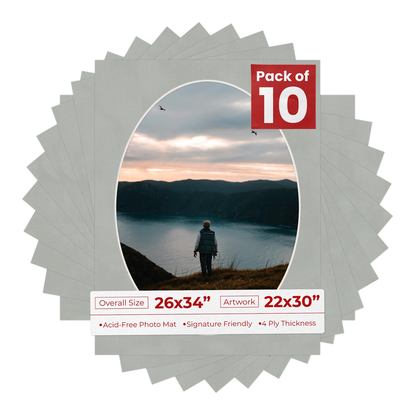 Light Grey Suede Mat Board for 26x34 Frames - Oval Opening for 22x30 Photos