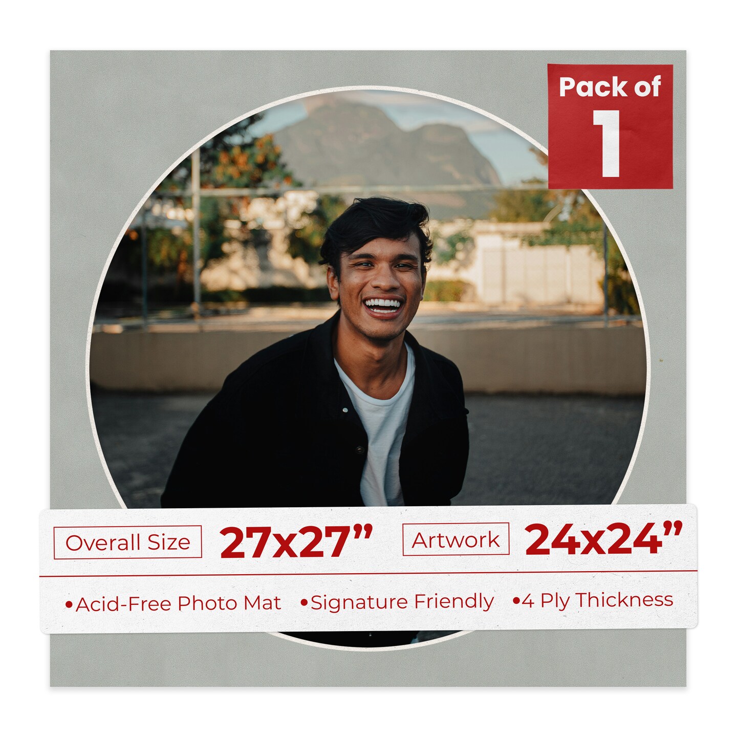 Light Grey Suede Mat Board for 27x27 Frames - Circle Opening for 24x24 Photos