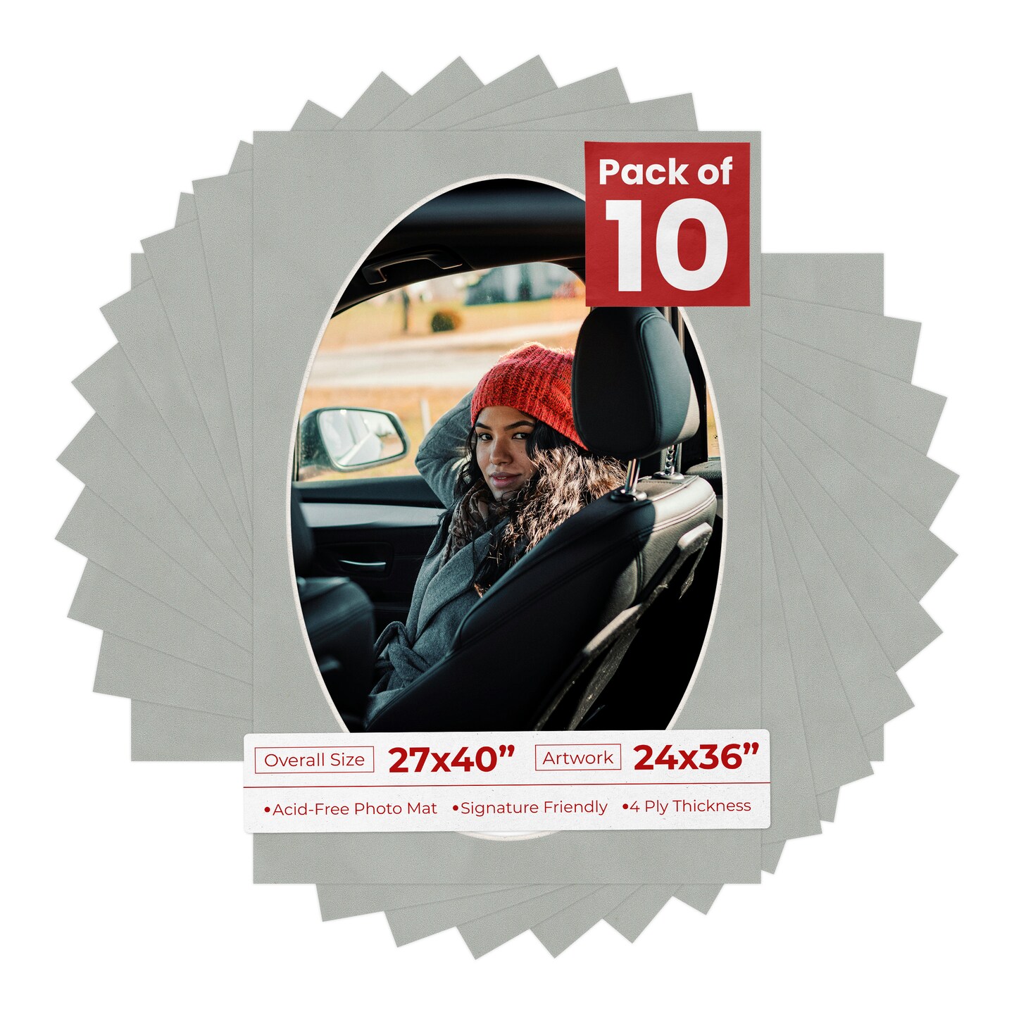 Light Grey Suede Mat Board for 27x40 Frames - Oval Opening for 24x36 Photos