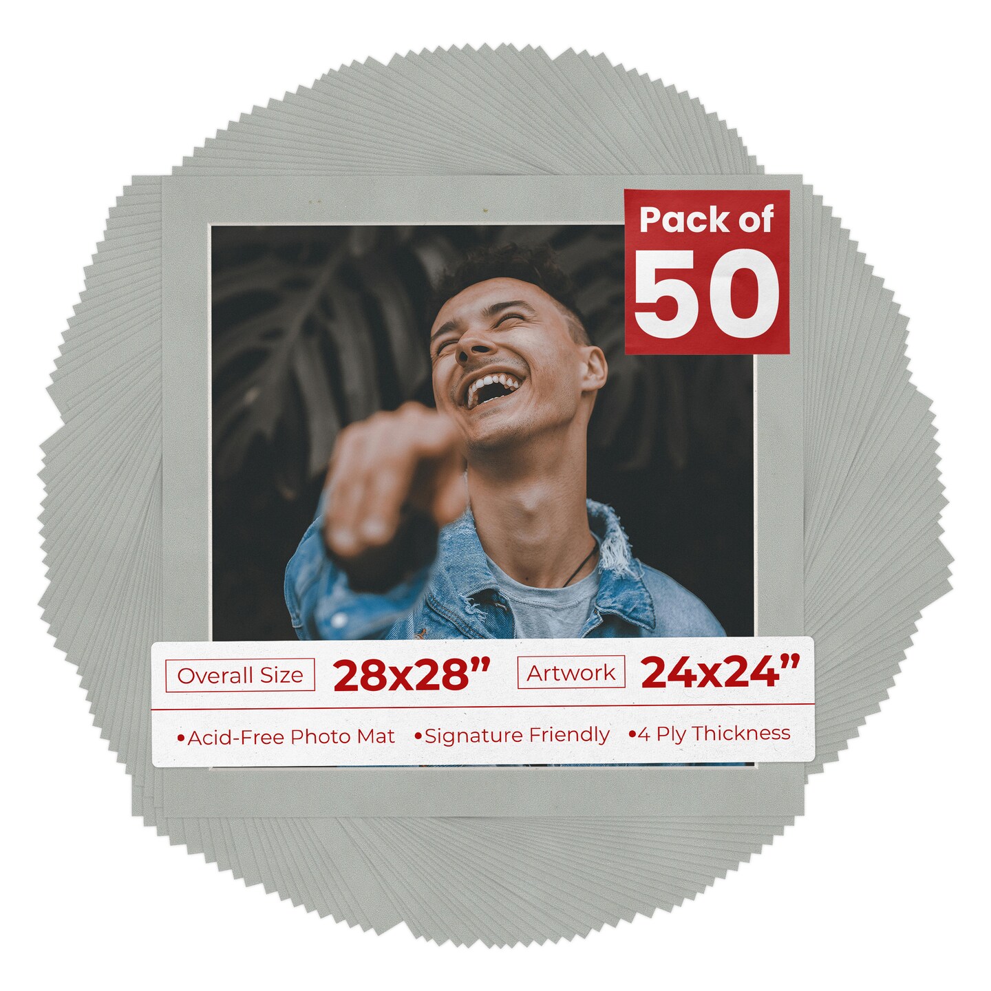 Light Grey Suede Mat Board for 28x28 Frames - Fits 24x24 Photos
