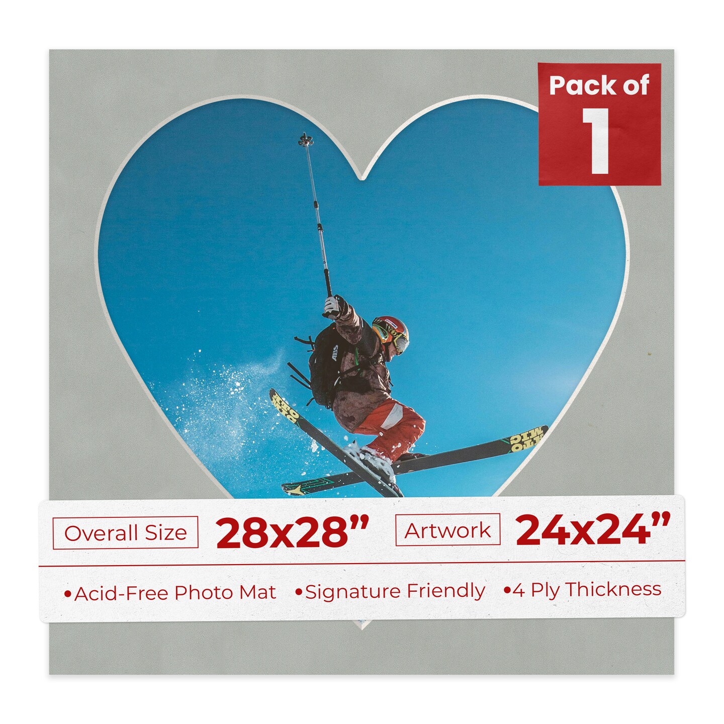 Light Grey Suede Mat Board for 28x28 Frames - Heart Opening for 24x24 Photos