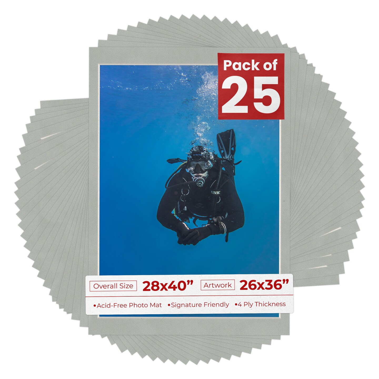 Light Grey Suede Mat Board for 28x40 Frames - Fits 26x36 Photos