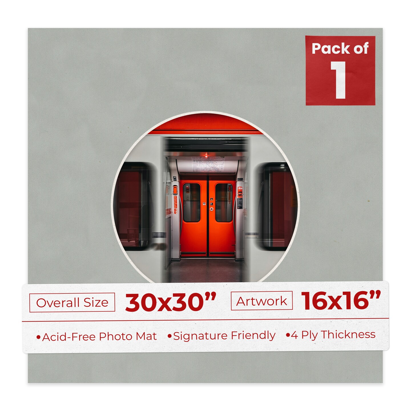 Light Grey Suede Mat Board for 30x30 Frames - Circle Opening for 16x16 Photos