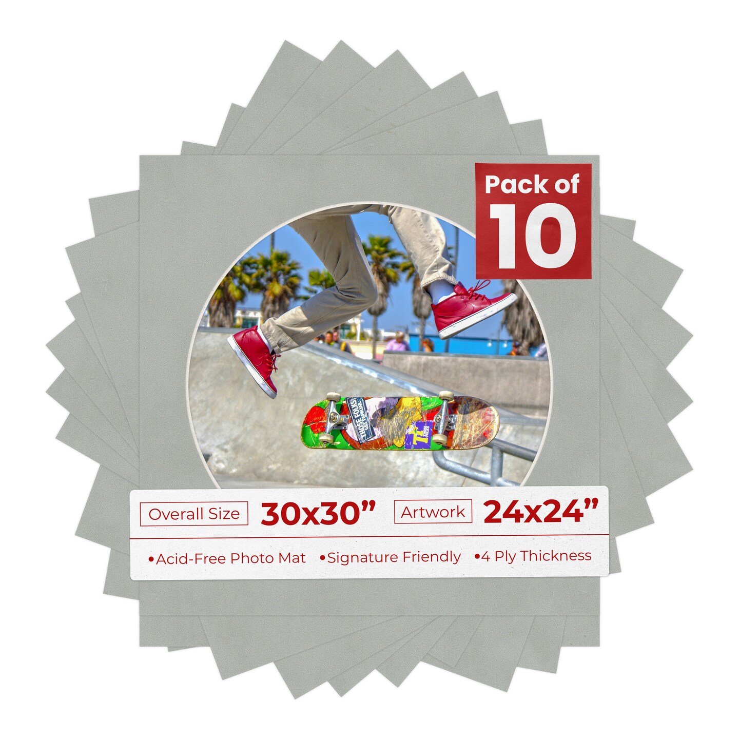 Light Grey Suede Mat Board for 30x30 Frames - Circle Opening for 24x24 Photos