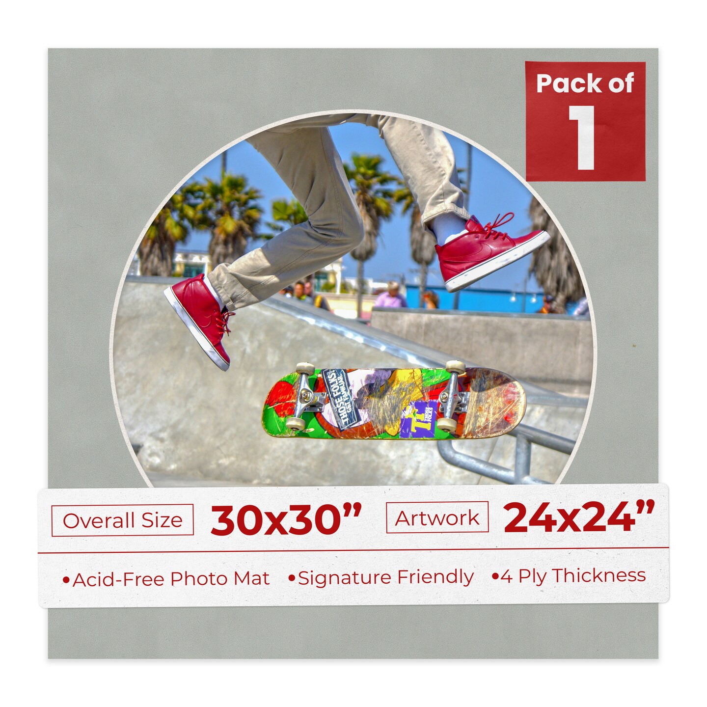 Light Grey Suede Mat Board for 30x30 Frames - Circle Opening for 24x24 Photos