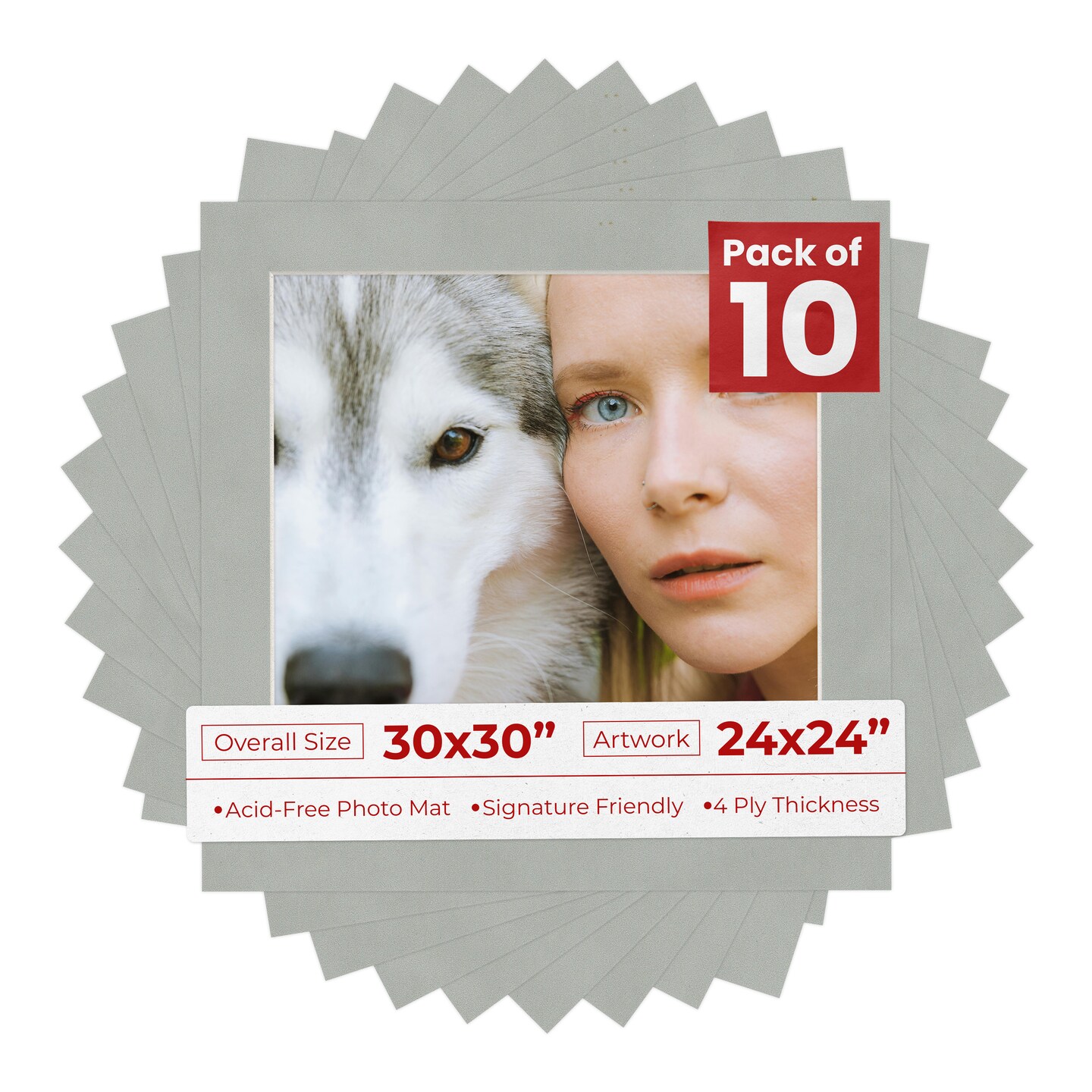 Light Grey Suede Mat Board for 30x30 Frames - Fits 24x24 Photos