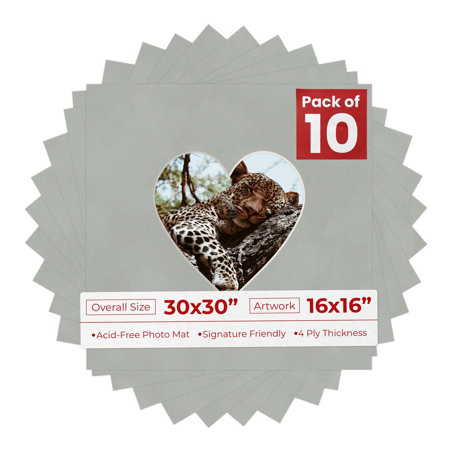 Light Grey Suede Mat Board for 30x30 Frames - Heart Opening for 16x16 Photos