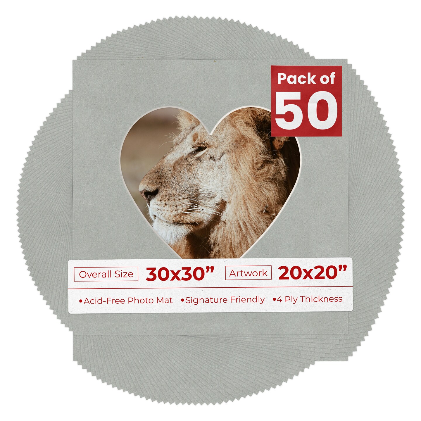 Light Grey Suede Mat Board for 30x30 Frames - Heart Opening for 20x20 Photos