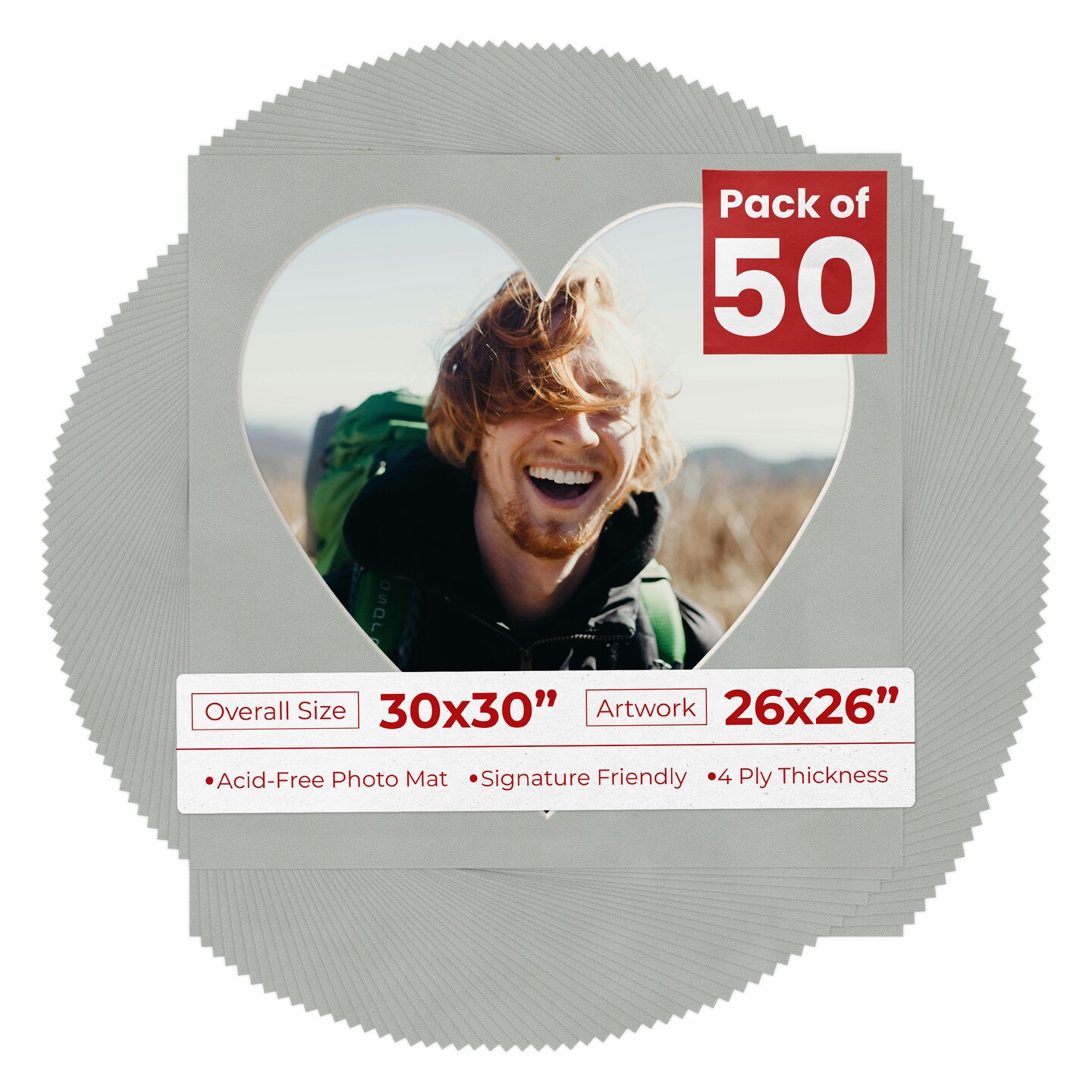Light Grey Suede Mat Board for 30x30 Frames - Heart Opening for 26x26 Photos