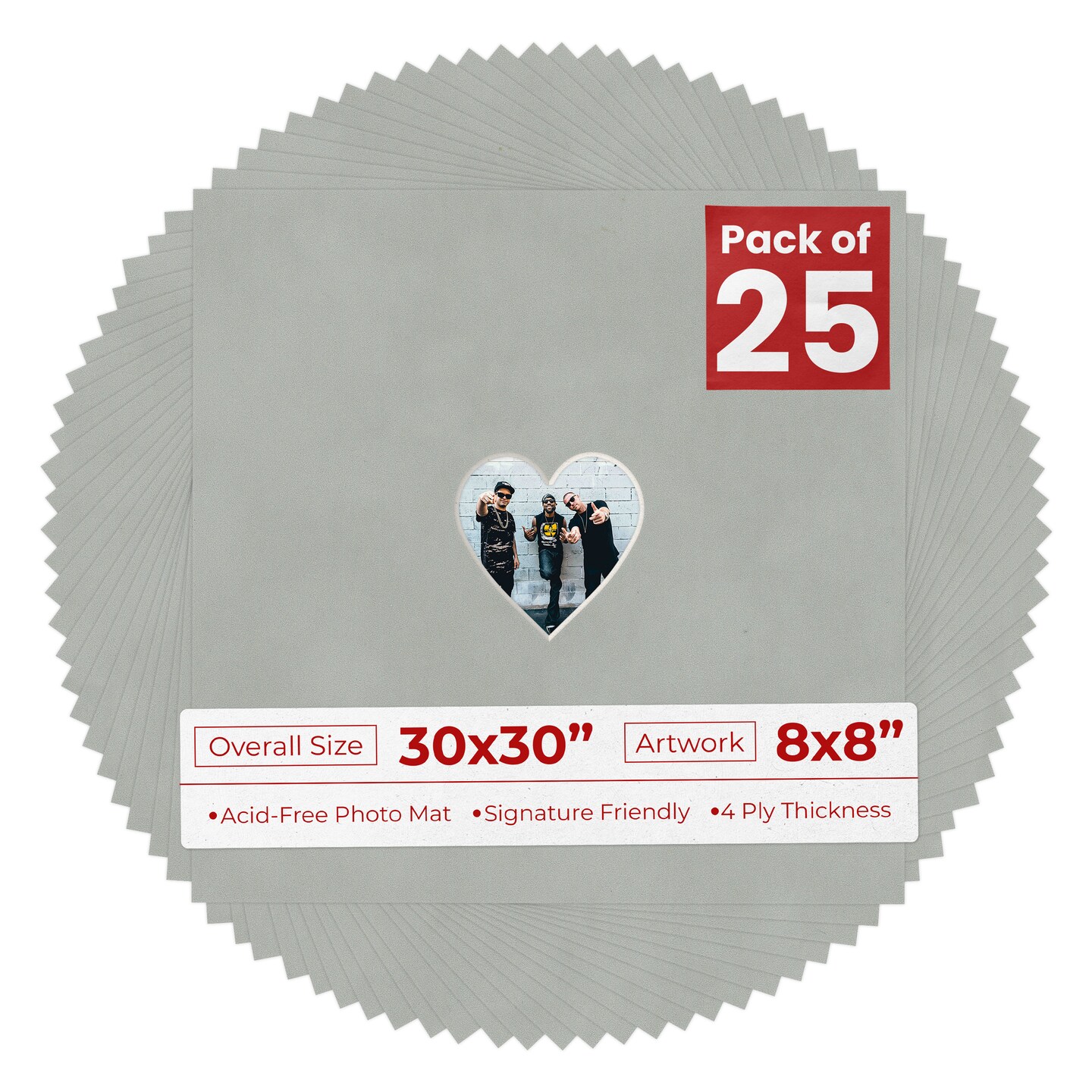 Light Grey Suede Mat Board for 30x30 Frames - Heart Opening for 8x8 Photos