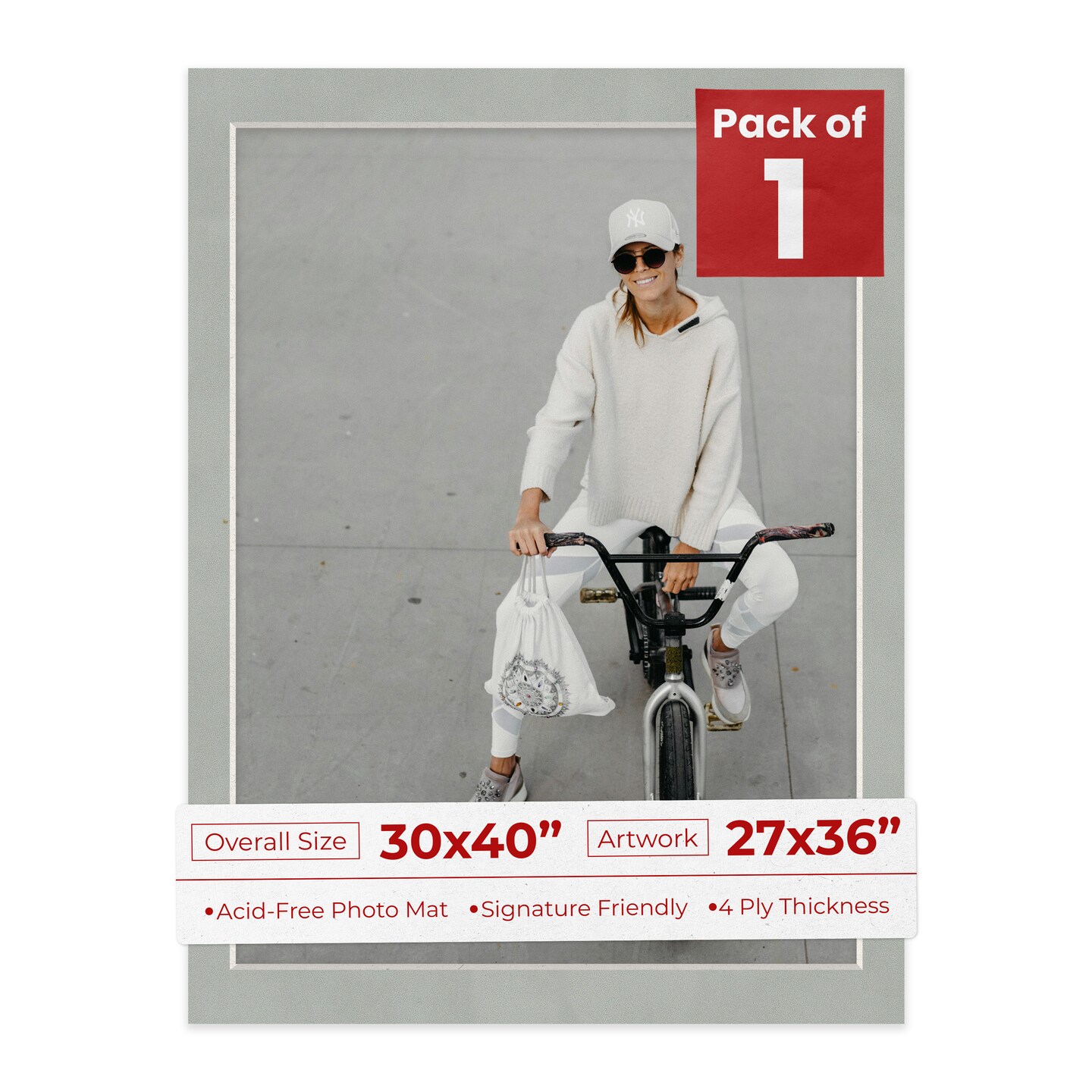 Light Grey Suede Mat Board for 30x40 Frames - Fits 27x36 Photos