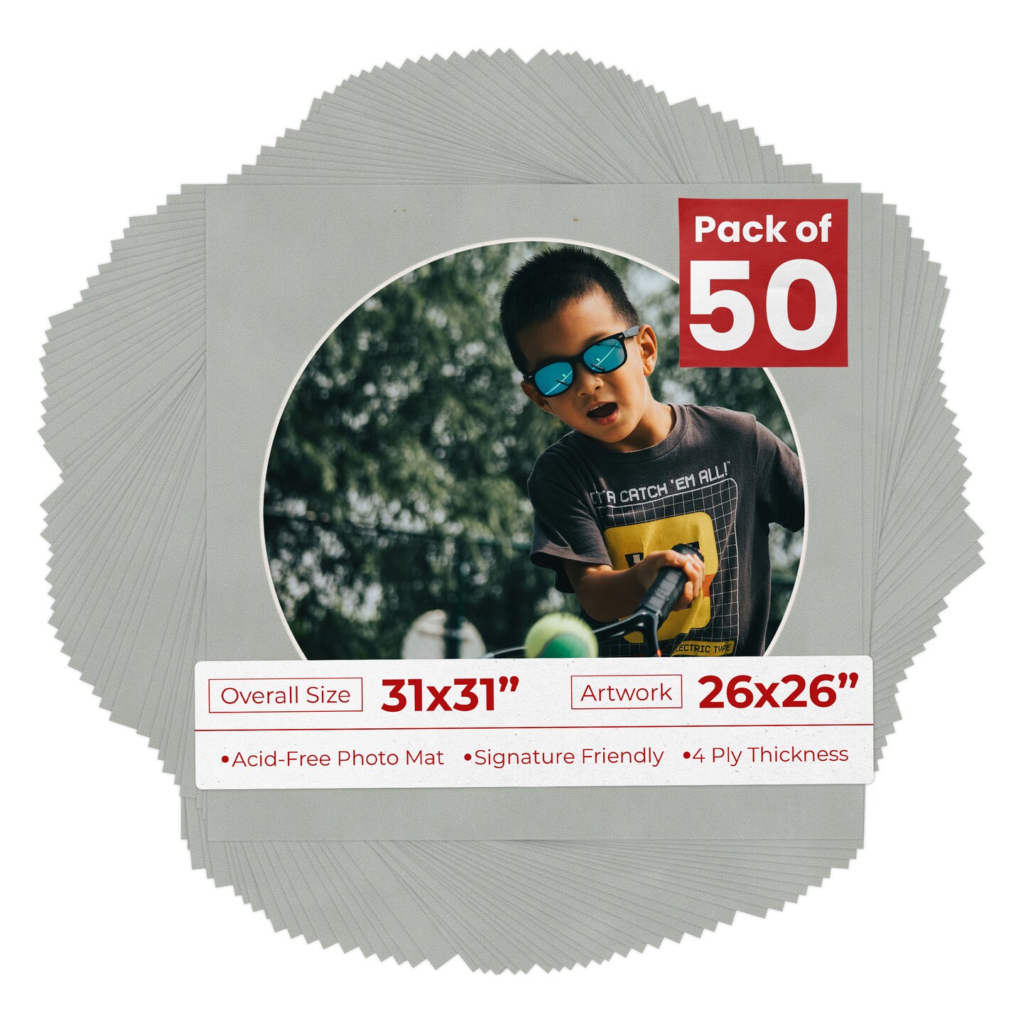 Light Grey Suede Mat Board for 31x31 Frames - Circle Opening for 26x26 Photos