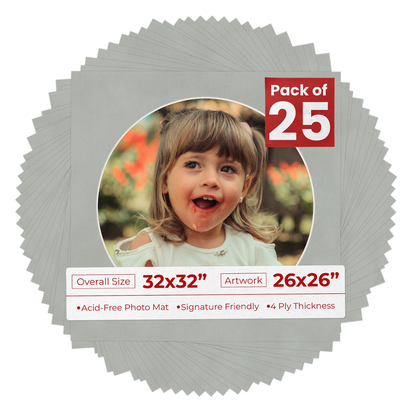 Light Grey Suede Mat Board for 32x32 Frames - Circle Opening for 26x26 Photos