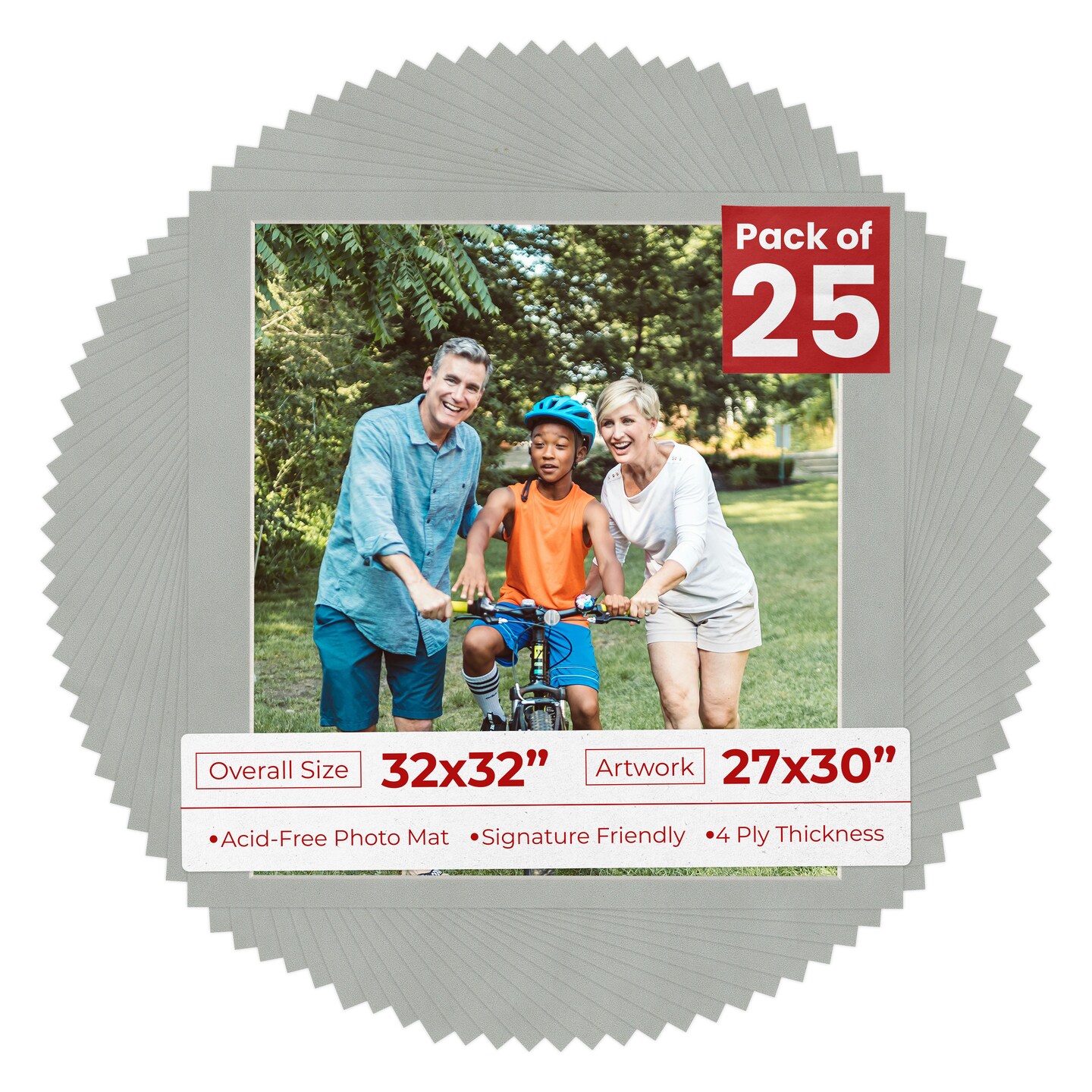 Light Grey Suede Mat Board for 32x32 Frames - Fits 27x30 Photos