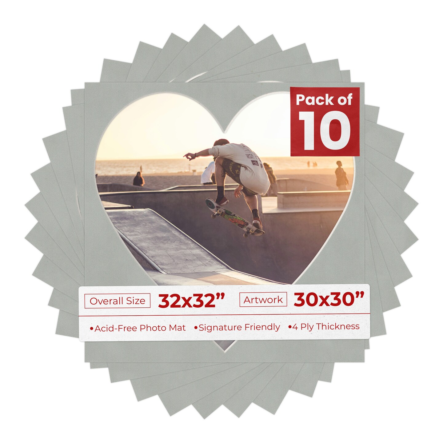 Light Grey Suede Mat Board for 32x32 Frames - Heart Opening for 30x30 Photos