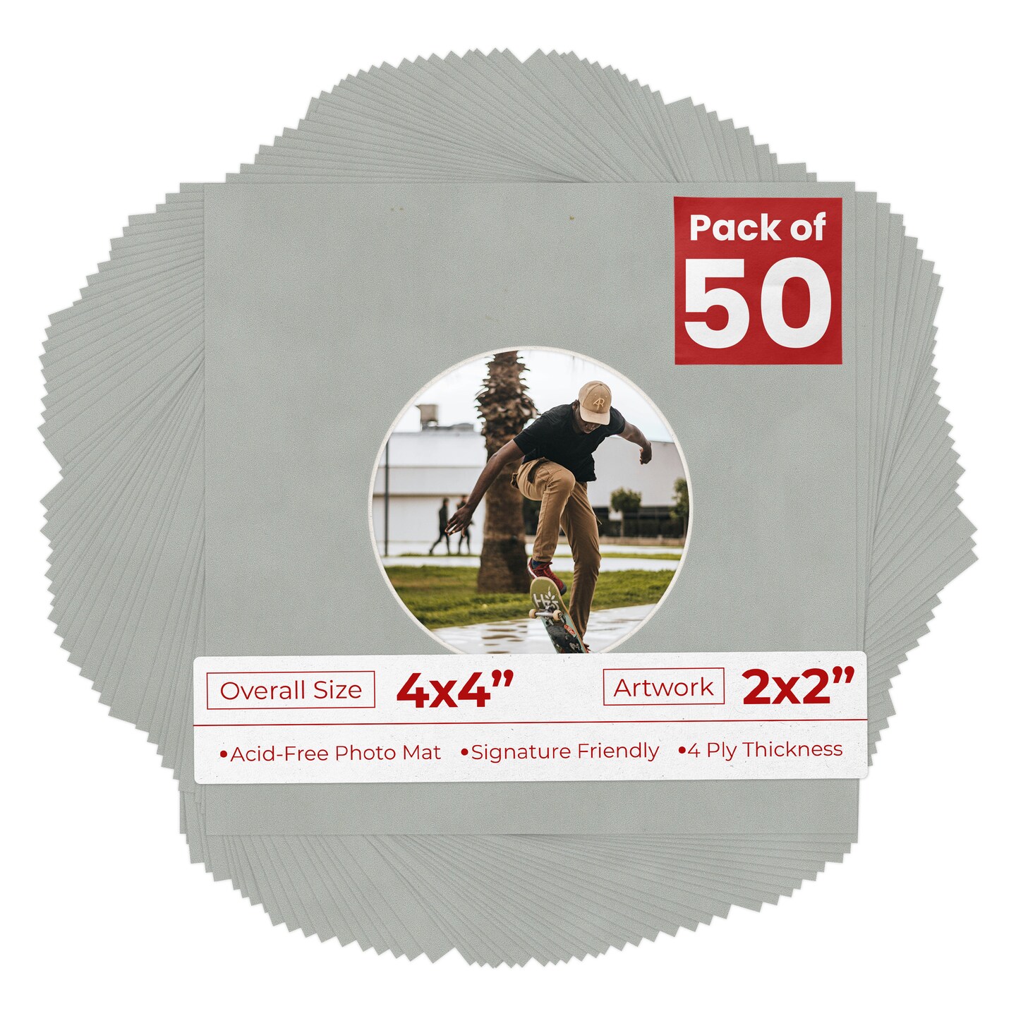 Light Grey Suede Mat Board for 4x4 Inch Frames - Circle Opening for 2x2 Photos