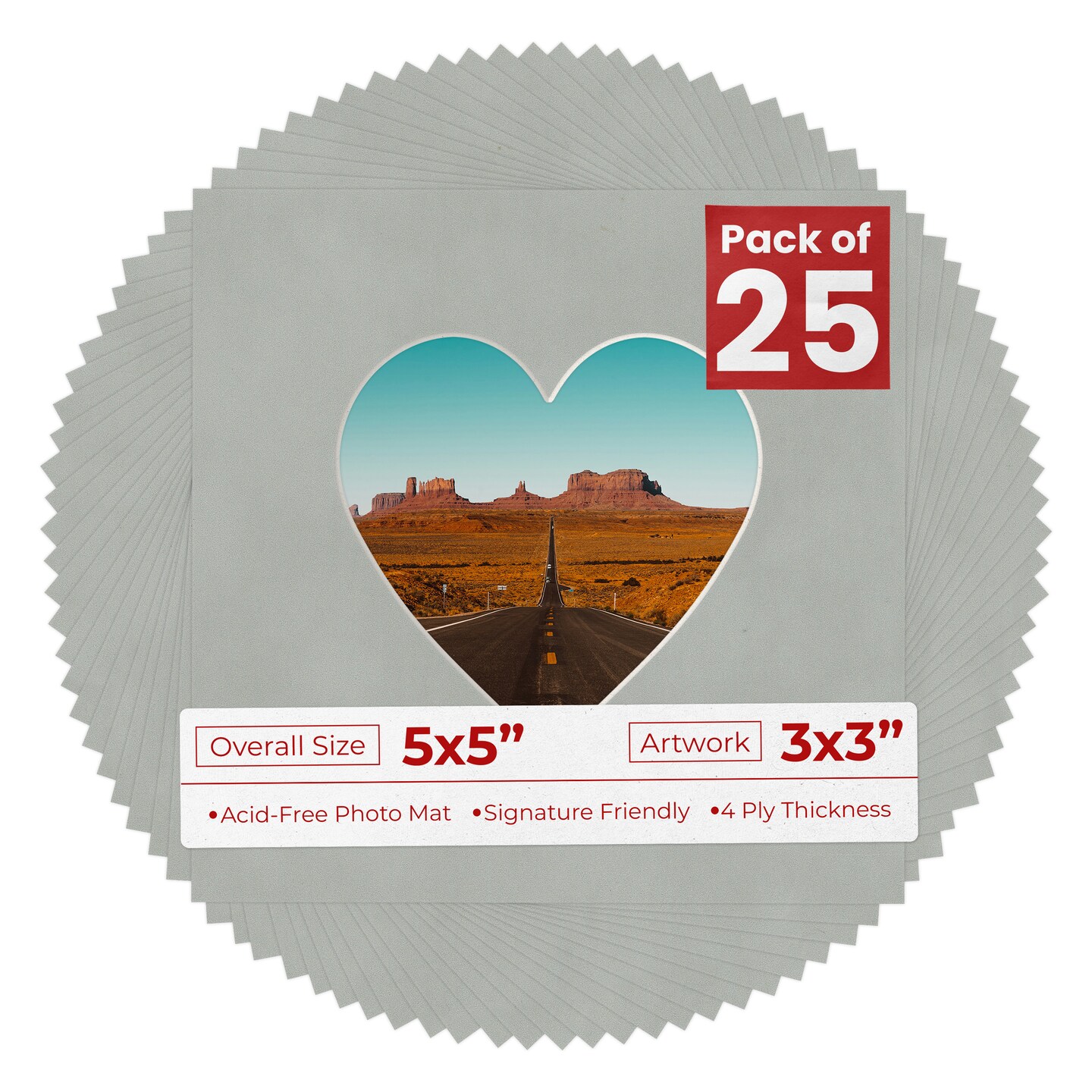 Light Grey Suede Mat Board for 5x5 Inch Frames - Heart Opening for 3x3 Photos