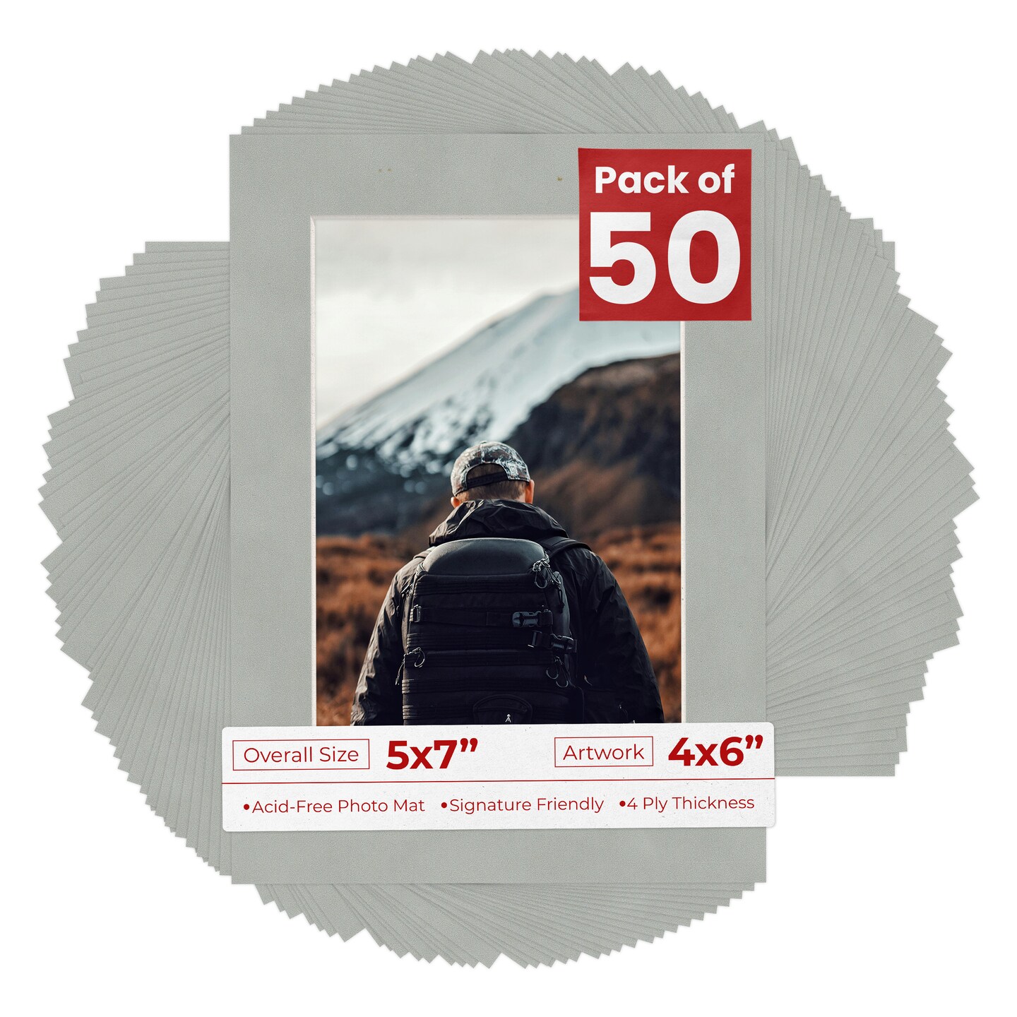 Light Grey Suede Mat Board for 5x7 Frames - Fits 4x6 Photos