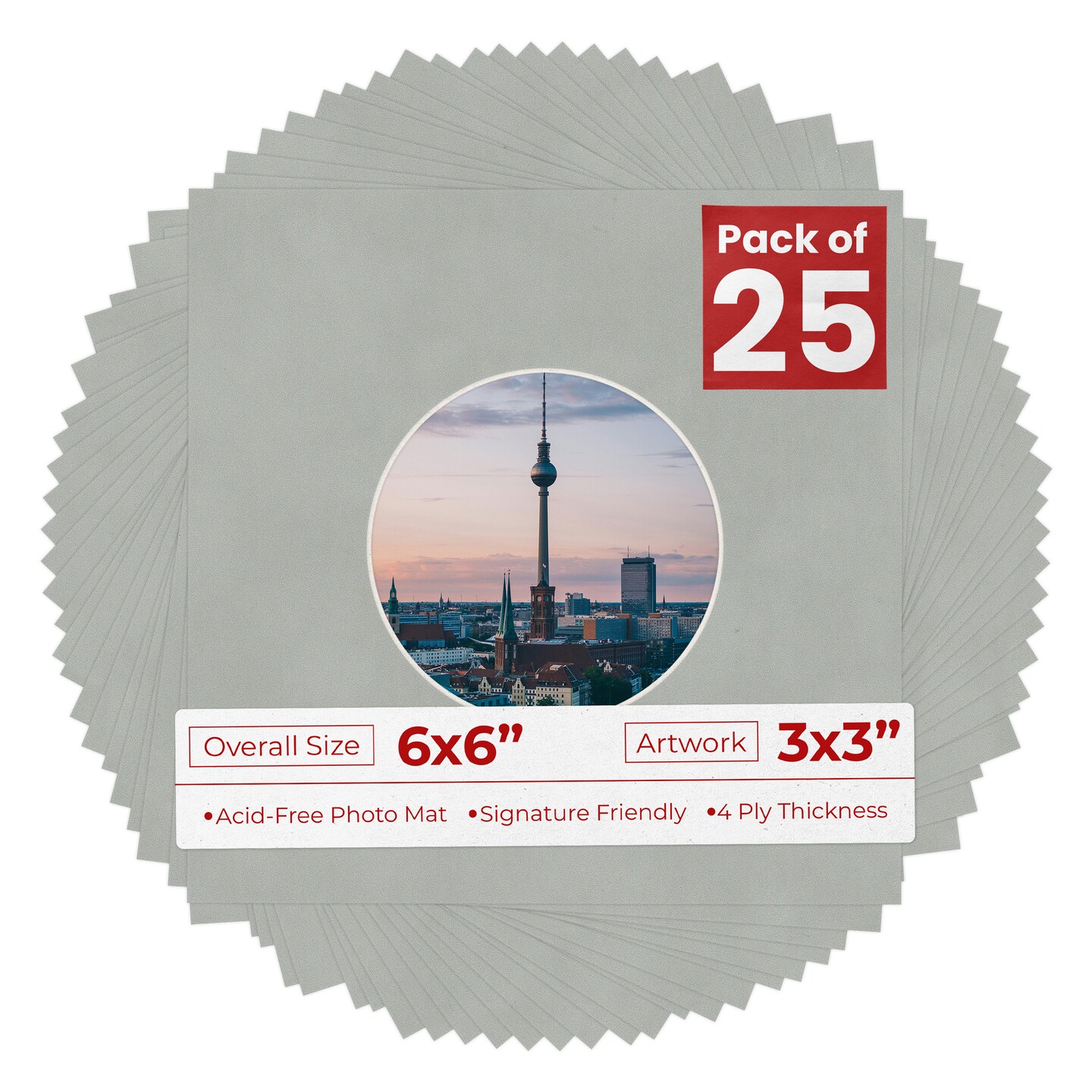 Light Grey Suede Mat Board for 6x6 Frames - Circle Opening for 3x3 Photos