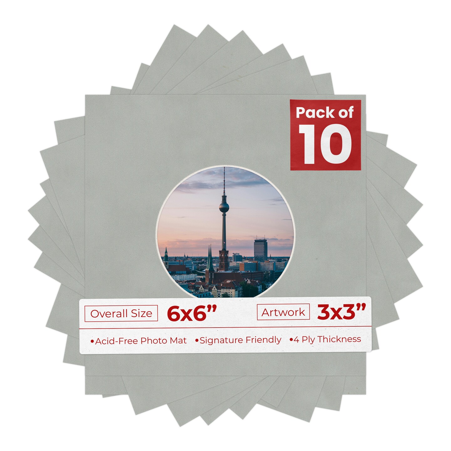 Light Grey Suede Mat Board for 6x6 Frames - Circle Opening for 3x3 Photos