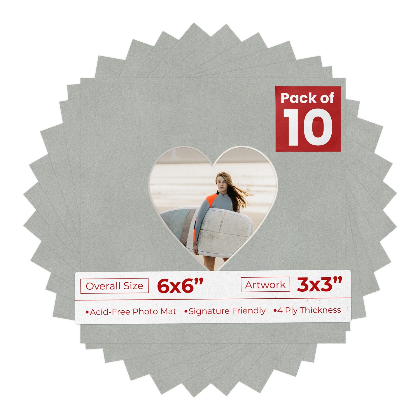 Light Grey Suede Mat Board for 6x6 Frames - Heart Opening for 3x3 Photos