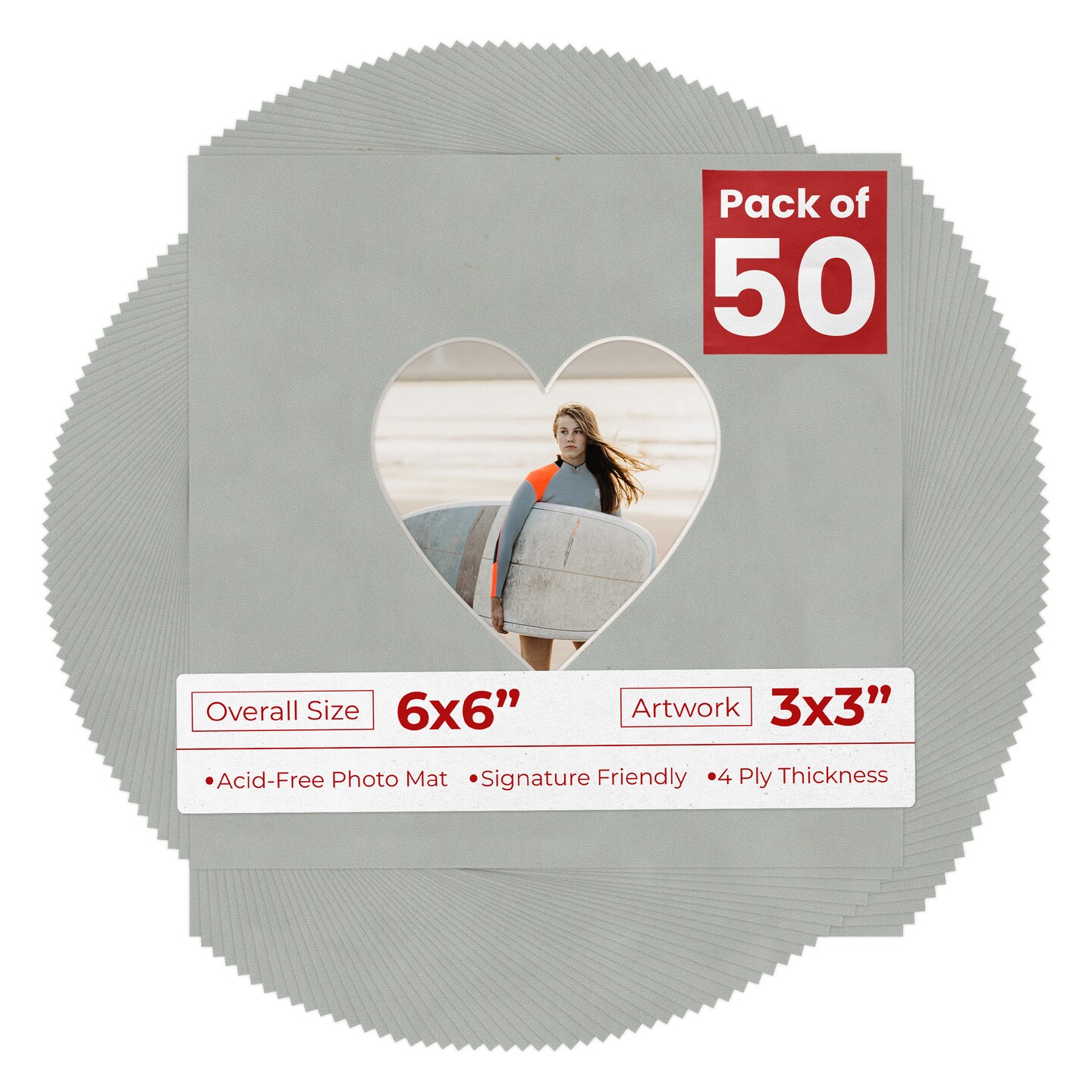 Light Grey Suede Mat Board for 6x6 Frames - Heart Opening for 3x3 Photos