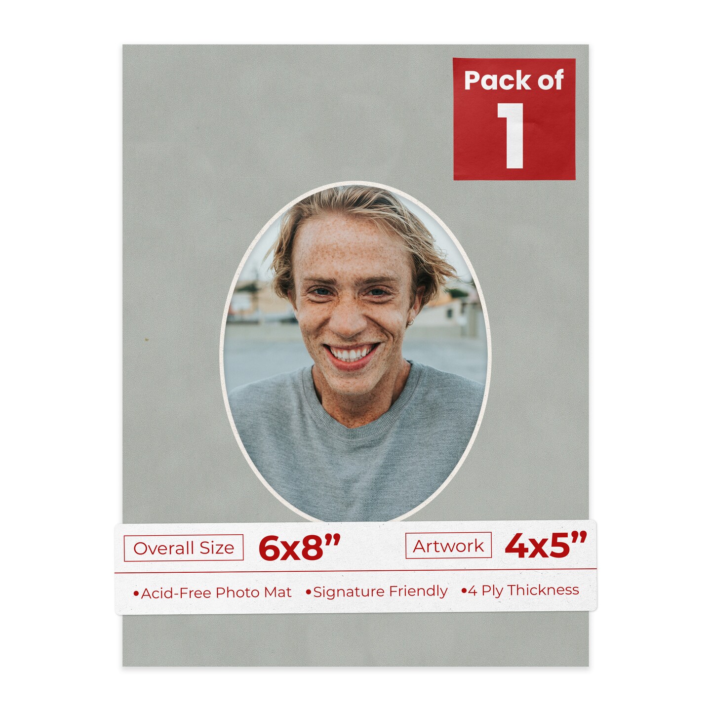 Light Grey Suede Mat Board for 6x8 Frames - Oval Opening for 4x5 Photos