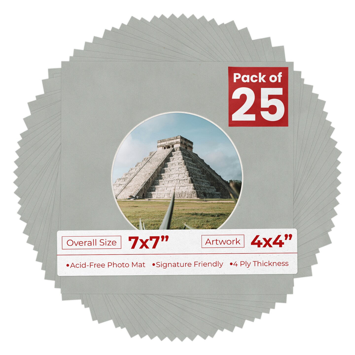 Light Grey Suede Mat Board for 7x7 Frames - Circle Opening for 4x4 Photos