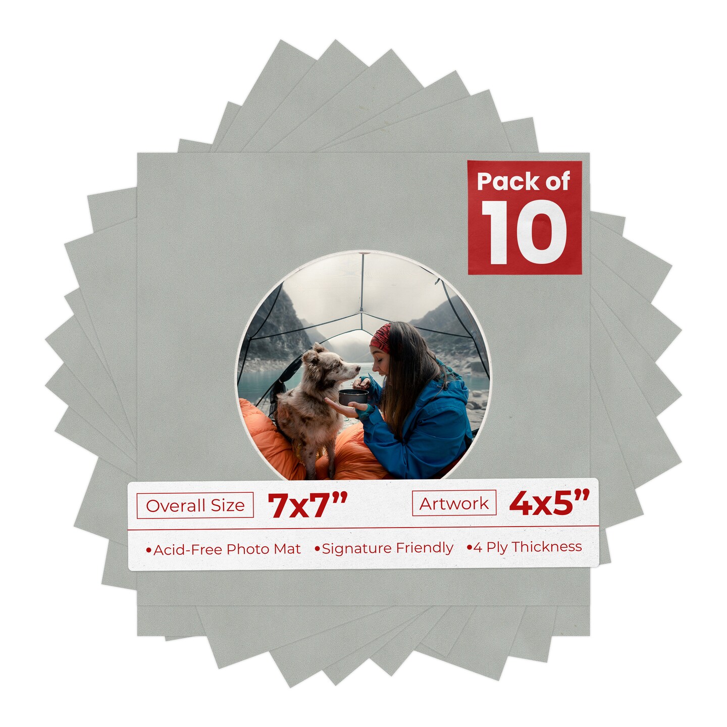 Light Grey Suede Mat Board for 7x7 Frames - Circle Opening for 4x5 Photos