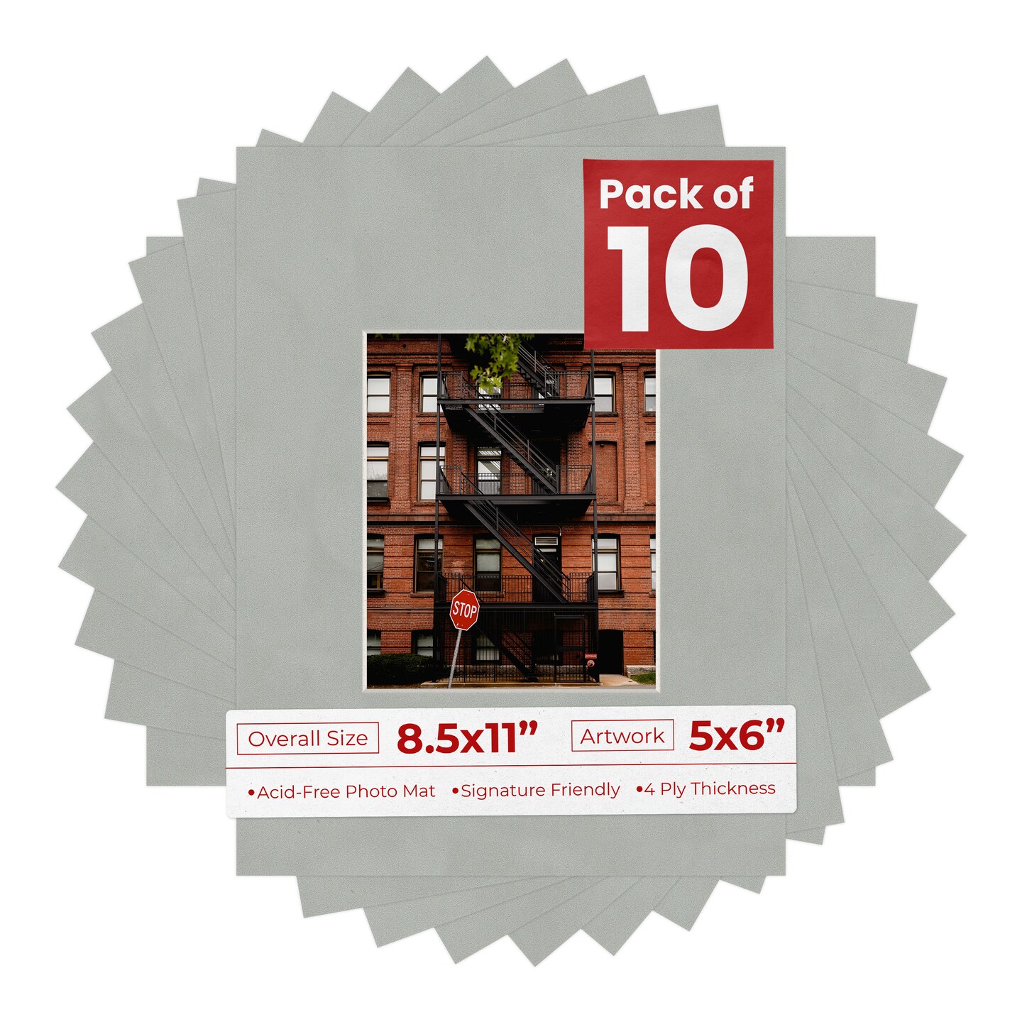 Light Grey Suede Mat Board for 8.5x11 Frames - Fits 5x6 Photos