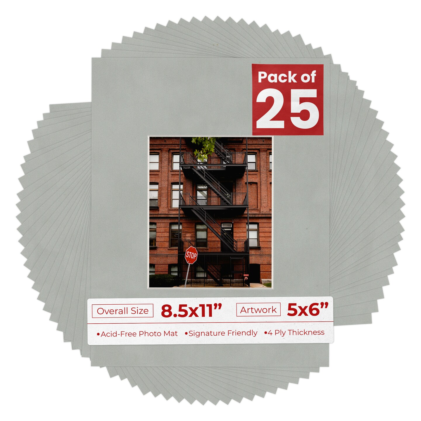 Light Grey Suede Mat Board for 8.5x11 Frames - Fits 5x6 Photos