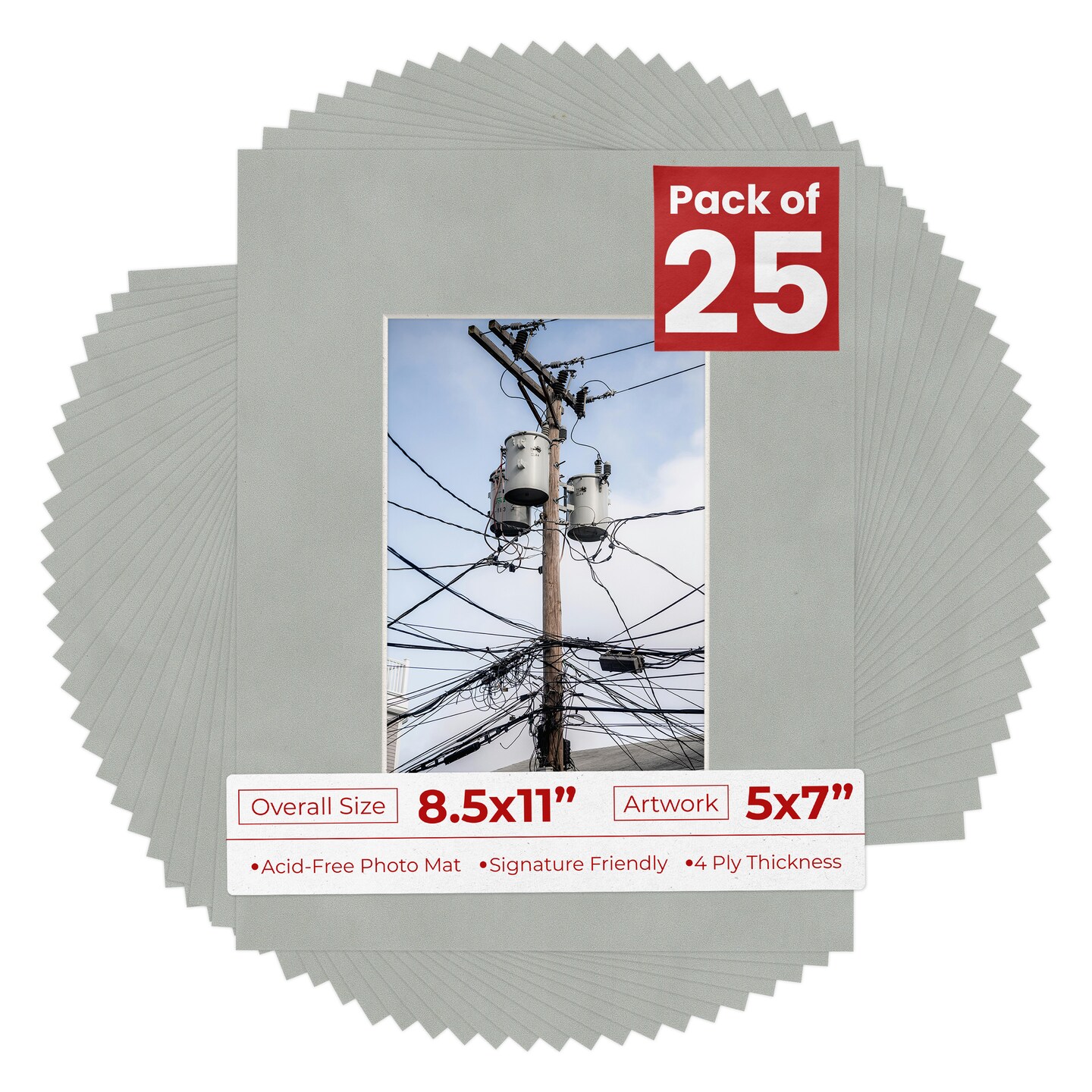 Light Grey Suede Mat Board for 8.5x11 Frames - Fits 5x7 Photos