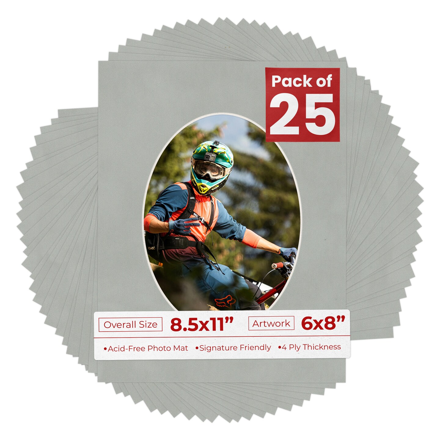 Light Grey Suede Mat Board for 8.5x11 Frames - Oval Opening for 6x8 Photos