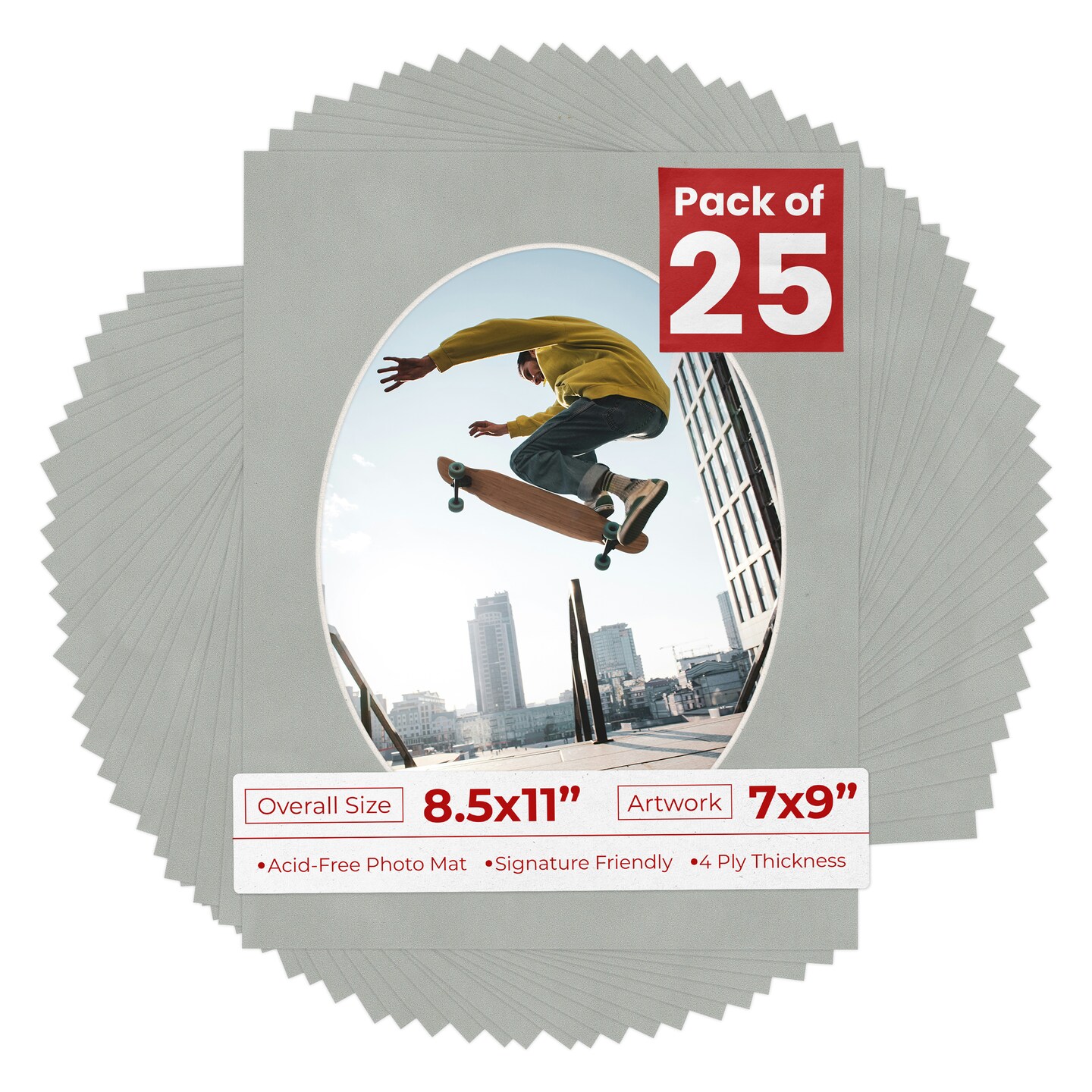 Light Grey Suede Mat Board for 8.5x11 Frames - Oval Opening for 7x9 Photos