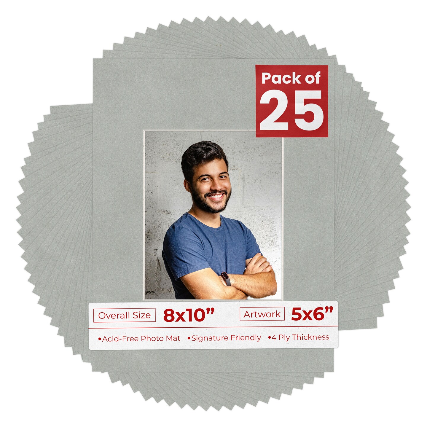 Light Grey Suede Mat Board for 8x10 Frames - Fits 5x6 Photos